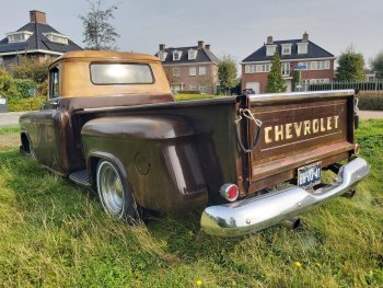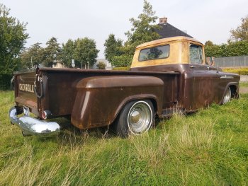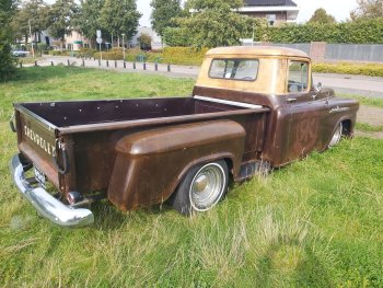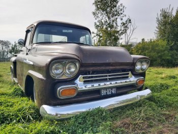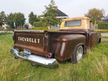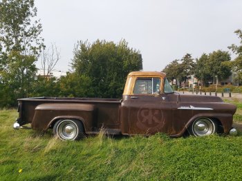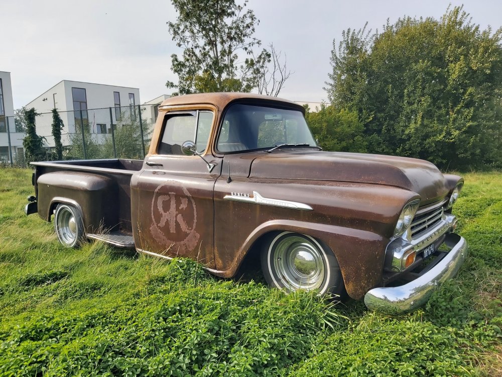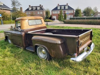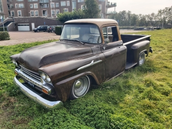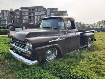 Up for sale this cool 1959 Chevrolet Apache 3200 stepside pick up!! This bad boy is powered by a smooth running tuned 350ci and TH350 Automatic. Double exhaustsystem, Smoothie wheels, Stereo, Vintage AC and absolute rustfree!! It has the ratlook (rustlook) and will be delivered without or with logo's of your choice! Power disc brakes in front, Power steering! This pick drives great so come round and check it out!! € 37.950,- Call 0031(0)611140337 www.automagic.nl Automagic Youtube channel. We can deliver through all of Europe and we can assist with Tuv and H zulassung!