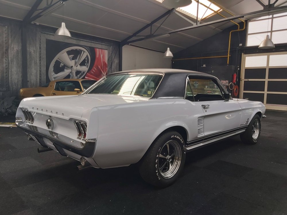 Up for sale this superclean 1967 Ford Mustang coupe powered by a rebuild souped up 302ci with street cam, bigger intake and carb.. headers and double exhaustsystem, black vinyl top, power steering, new power disc brakes, deluxe black interior, new wheels and tires, GT grill and foglights, Automatic, console shift, roofconsole, new alu radiator and the list goes on!! This bad boy runs strong and is fast.. come and have a look!! On new Dutch registration € 32.950,- We can deliver with Tuv and H zulassung! We can arrange transport to your doorstep! www.automagic.nl Cause 40 years of experience makes a difference! Automagic Youtube channel.